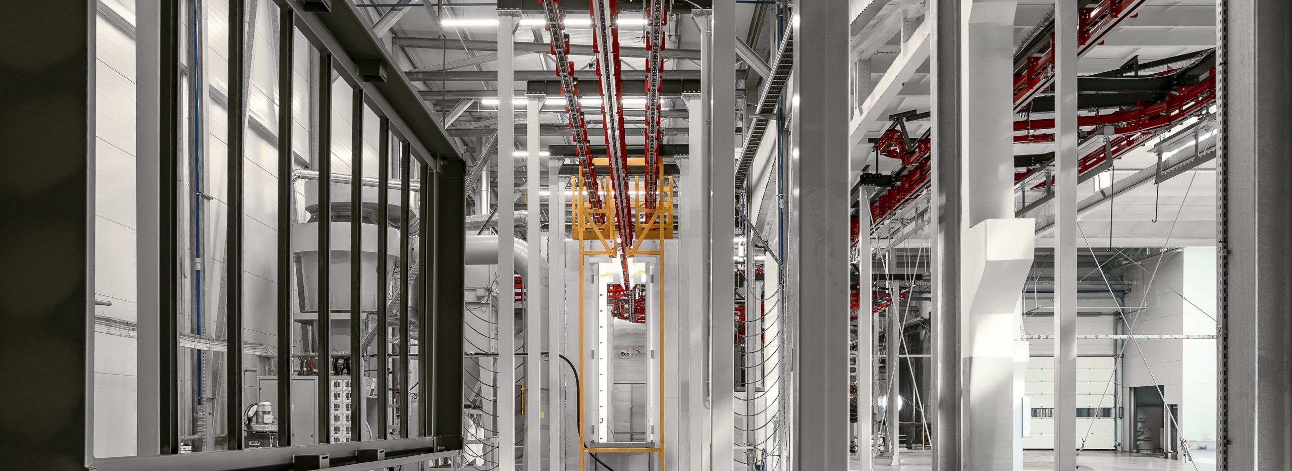 Dla zapewnienia pełnego krycia 6-metrowych detali, Ecoline wdrożyło kabinę o wysokości 6 metrów, wyposażoną w 24 pistolety oparte na technologii pomp fazy gęstej. System zasilany jest z ogromnych zbiorników typu „big bag”, co gwarantuje ciągłość podawania farby przy ogromnym przepływie masowym..